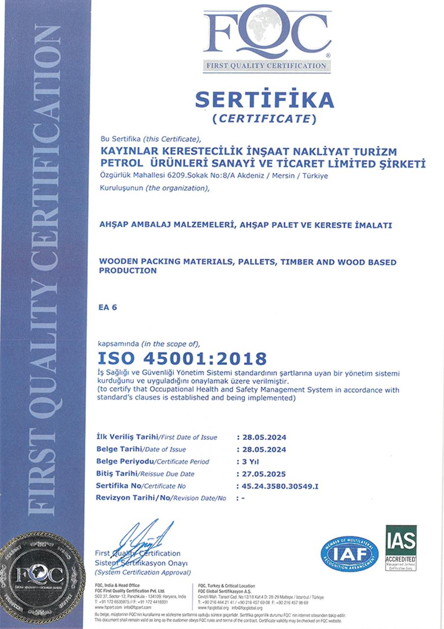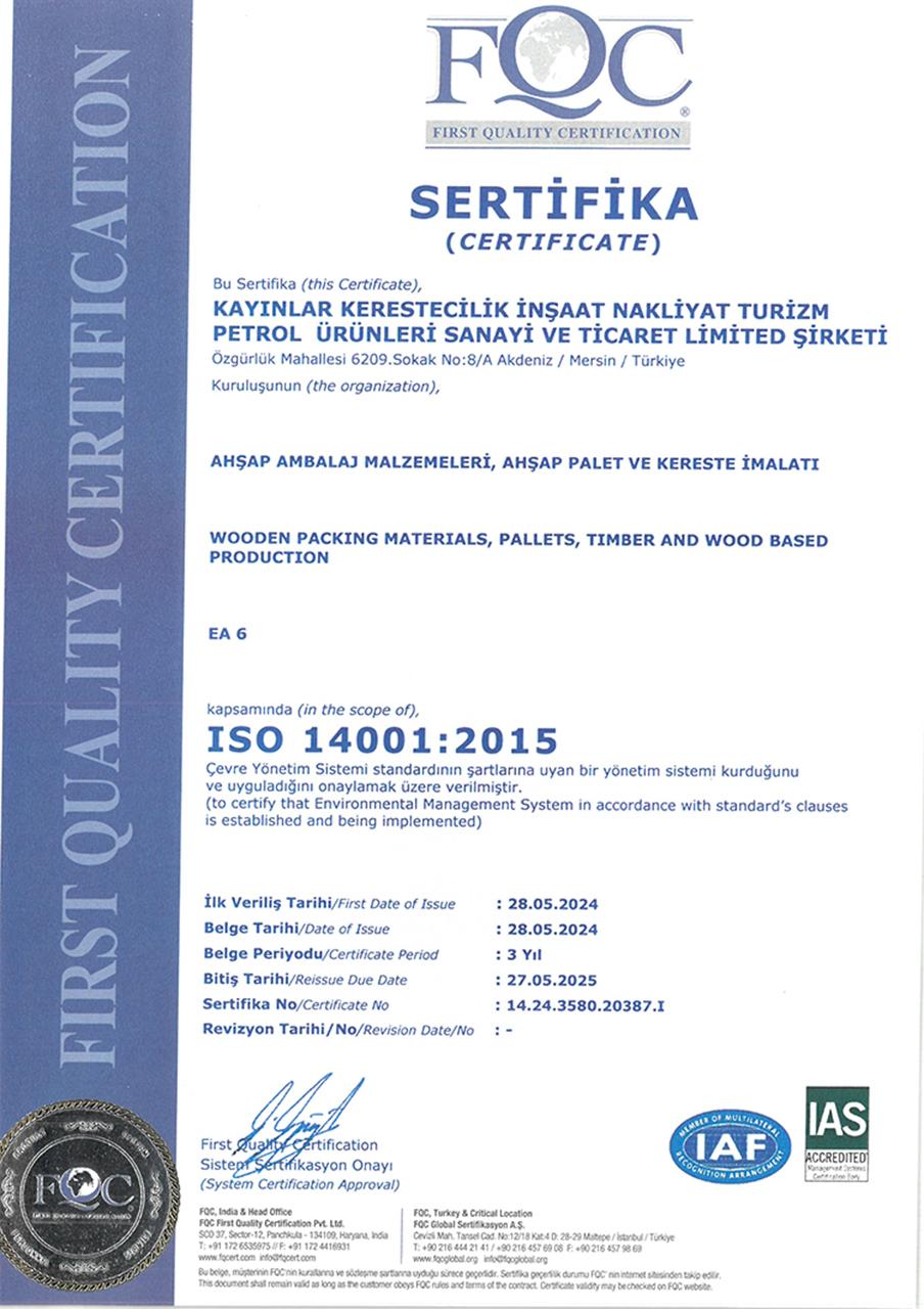 Kayınlar Kerestecilik olarak, faaliyetlerimizi yürütürken sahip olduğumuz sertifikalar ve belgeler, yüksek kalite standartlarımızı ve profesyonel yaklaşımımızı yansıtmaktadır. İşte belgelerimiz: